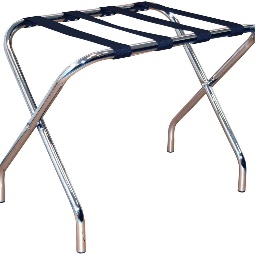 This essential luggage rack lends a stylish touch to any guest room or entryway. Classic wood frame unfolds to reveal complementing black nylon straps. Opens and folds easily for convenient and compact storage and use. Can hold up to 75 pounds.