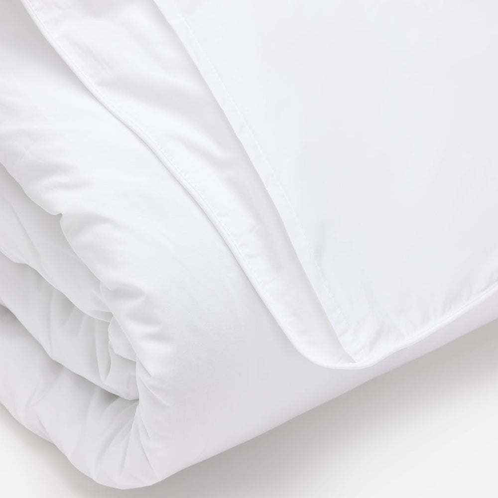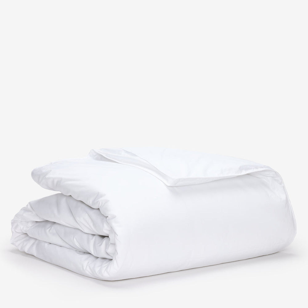 Boasting superior softness and breathability, our T-250 solid white duvet cover is crafted from a soft and durable 250-thread count polycotton blend. 60% long staple cotton and 40% wrinkle resistant polyester for the ideal combination of luxury and durability. Crisp and cool percale weave results in an impressive handfeel for a quality linen that lasts. Flap closure holds the duvet securely in place and discreet corner openings allow for easy washing and changing.